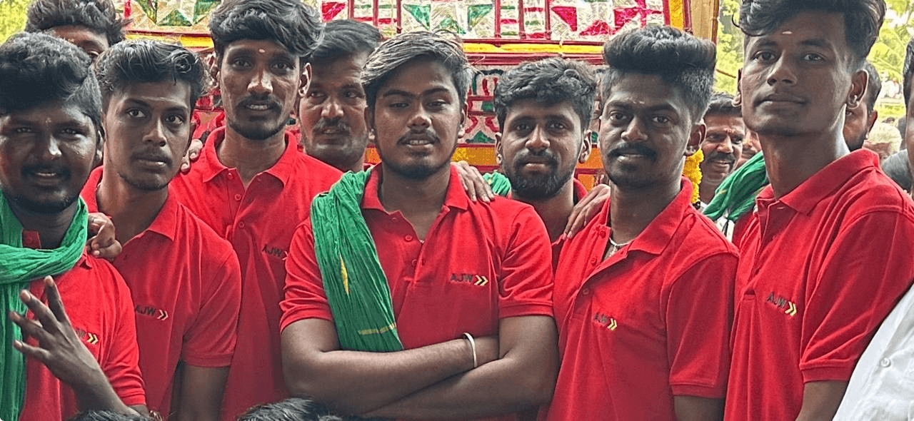 One example is an annual event in the small village of Ayikudi in southern India, where AJW sponsors 200 T-shirts for the community. This village has celebrated its largest and most sacred festival over a seven-day period every year for centuries.